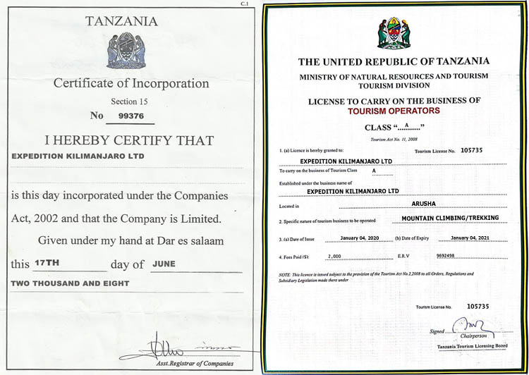 Expedition Kilimanjaro is ook in Tanzania een geregistreerde tour operator en organisator van beklimmingen van de Kilimanjaro.